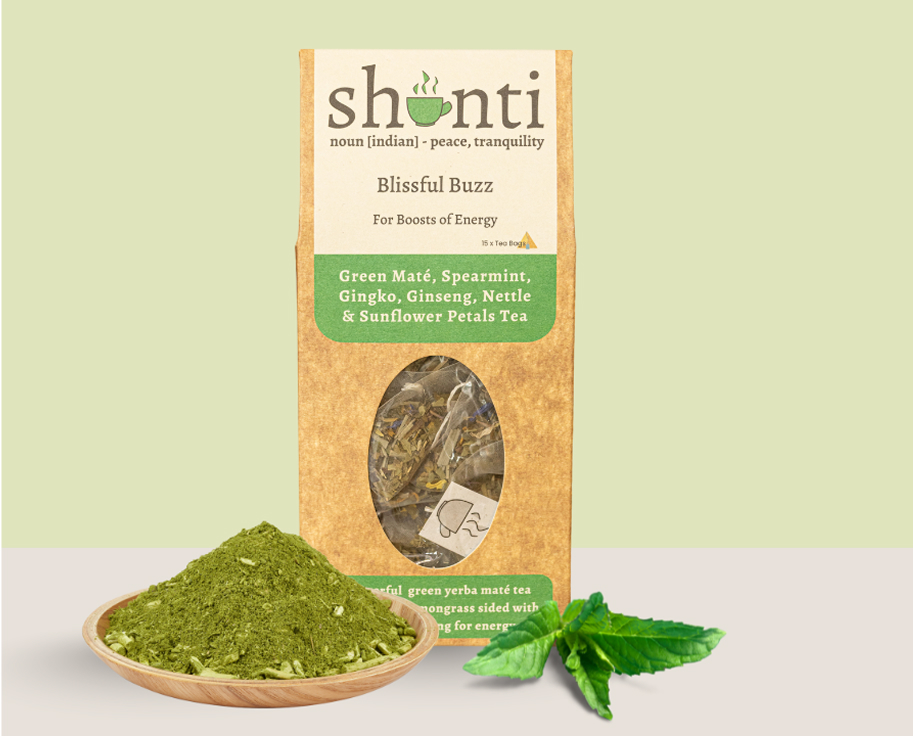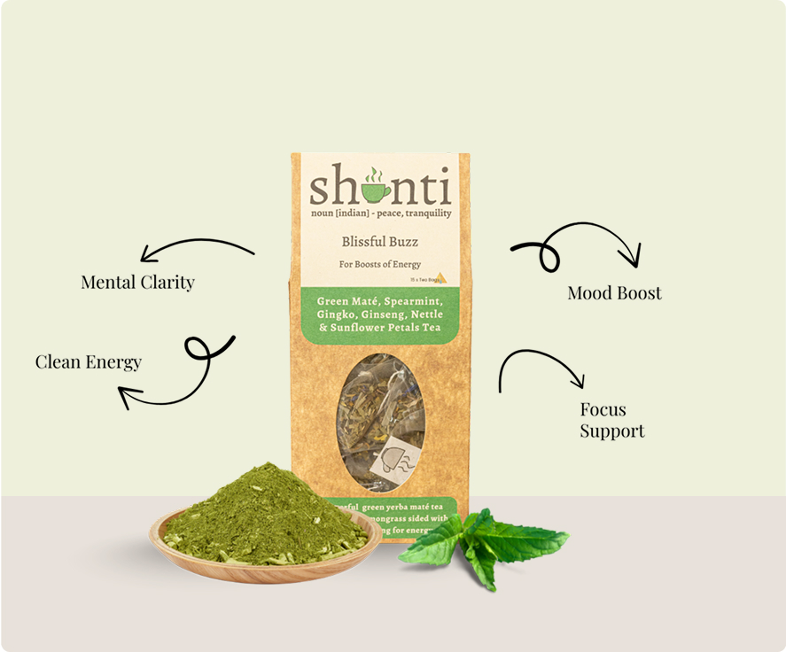 Feel invigorated and boost energy naturally with Blissful Buzz, a spearmint tea blend…