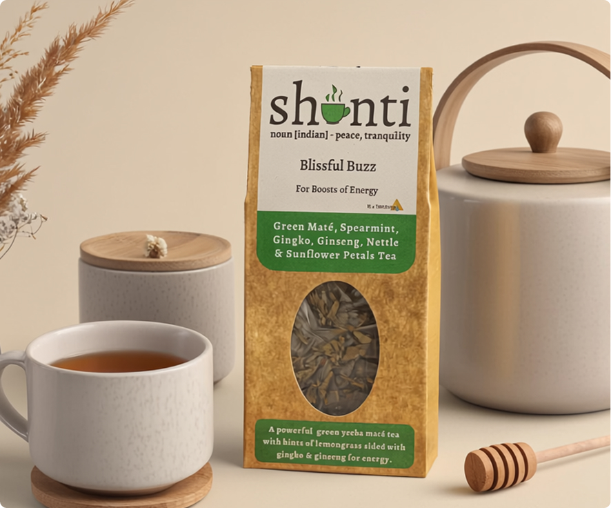 Feel invigorated and boost energy naturally with Blissful Buzz, a spearmint tea blend designed to provide a clean energy boost that helps improve focus, mental clarity, and overall resilience. Perfect for busy days or when you need a lift without the jitters, Blissful Buzz supports a brighter mood, improved energy levels, and a steadier mind.