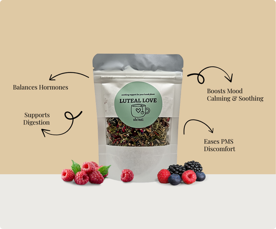 Each cup of Luteal Love is packed with natural herbs and flowers that gently support your body during the second half of your cycle.